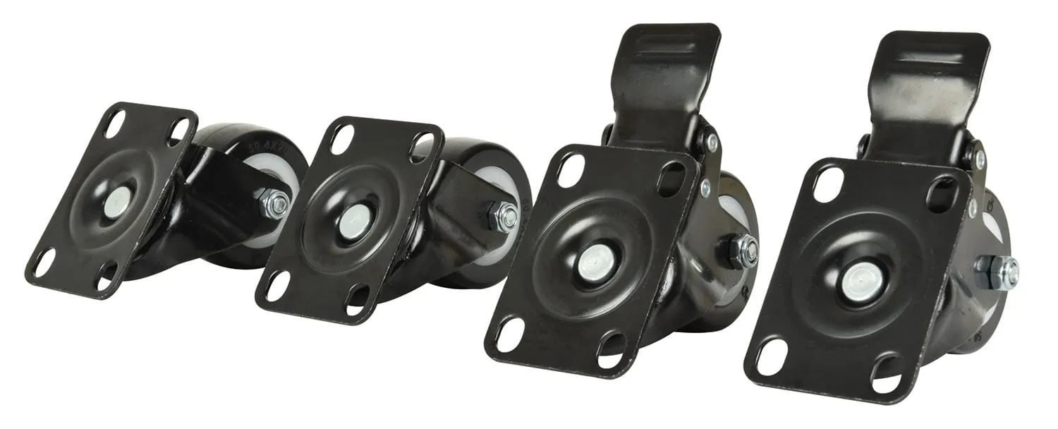 Deze set bestaat uit 4 wielen waarvan twee zwenkwielen en twee wielen met rem.