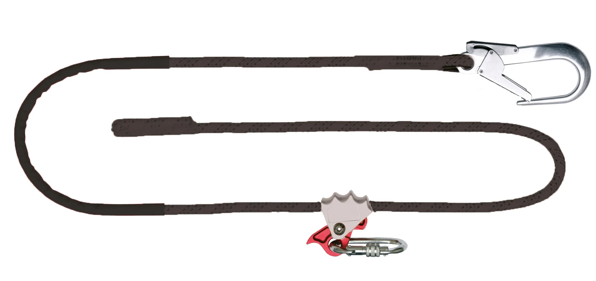 ELLERsafe AF130 PRO positioneerlijn - 2m:- Flexibele polyester kernmantellijn 14mm - Aluminium lengteversteller - Steigerpijphaak en karabijnhaak aan uiteinden - Kleur: zwart - EN 358