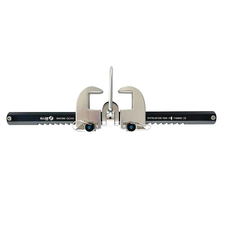 ELLERsafe aluminium balkenklem; aan stalen balken; profielbreedte 63,5-300mm; voor 1 persoon, max. 140kg; met 2 verplaatsbare bekken; EN 795-B; horizontaal gebruik.