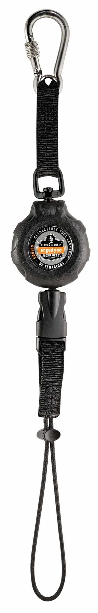 Ergodyne gereedschapsvanglijn verstelbaar met RVS karabijnhaak en lus; afneembaar gereedschapsgedeelte met snelsluitbevestiging; lengte 122cm; zwart