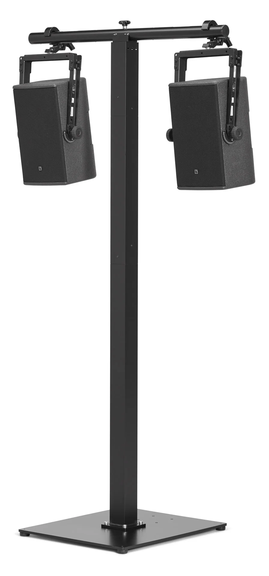 De oppervlakken zijn zwart gepoedercoat. De stalen basisplaat wordt gebruikt om de verlengstukken in drie verschillende posities te monteren, waardoor het gewicht van de units optimaal in balans is. De vierkante buizen zijn vanbinnen hol en kunnen daardoor gebruikt worden voor kabelgeleiding; de PG3 NEO Design Stand biedt daarom de perfecte oplossing voor rondslingerende kabels.