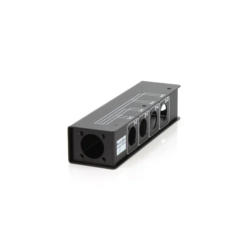 Stageblok breakout voor de montage van vier speakON chassisdelen (female) 4-polig D-formaat + 2x speakON chasisdeel (female) 8-polig. Veel gebruikt als breakout voor bijvoorbeeld line-array's, of als breakout i.c.m multie bekabeling bij het voeden 2 actieve of 4 passive monitor groepen. Dit product kan doorgelust worden middels de dubbele 8 polige speakON connector.