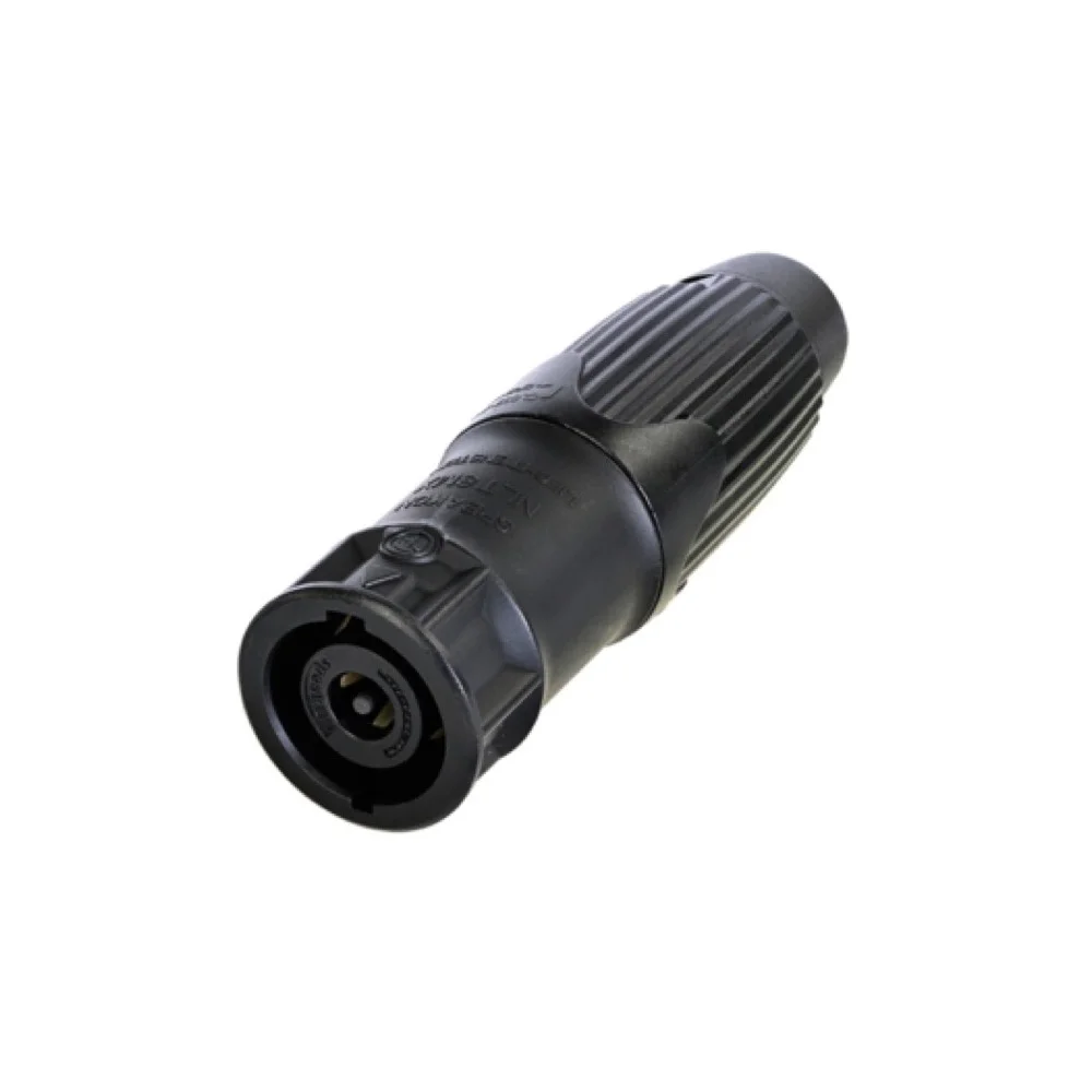 De Neutrik NLT8MXX-BAG is een 8-polig speakON kabeldeel met een male connector, voorzien van een robuuste zwarte metalen behuizing en ¼" platte tabs voor eenvoudige aansluiting. Deze connector is volledig in overeenstemming met de IEC62368-1 norm, dankzij de certificering van de componenten volgens IEC 61984.
