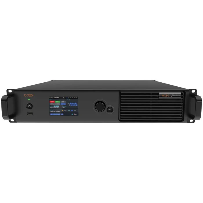 De MX30 van Novastar is een alles-in-één LED-displaycontroller die videoverwerking en LED-systeembesturing integreert. Met meerdere in- en uitgangen aan boord biedt de MX30 verschillende instelmogelijkheden. Hij is uitgerust met één HDMI 2.0-ingang + loop, één HDMI 1.4-ingang + loop, één DP 1.1-ingang en twee 3G-SDI-ingangen + loop. Als uitgang zijn er tien Gigabit Ethernet-poorten beschikbaar, twee 10G optische poorten en een S/PDIF optische poort. Hij heeft ook twee netwerkpoorten en een aux-poort, evenals een Genlock-ingang met doorlusmogelijkheid. Een bedieningsknop en een terugknop maken het samen met een 3,5 inch TFT-scherm eenvoudig om het apparaat te bedienen. De MX30 kan ook worden bediend met de uitgebreide, gebruiksvriendelijke VMP-software, die zorgt voor eenvoudige bediening en controle. Een cascade-opstelling via Ethernet is ook mogelijk en zowel SNMP- als Art-Net-protocollen worden ondersteund. Geavanceerde functies zijn onder andere drie onafhankelijke lagen, beeldschaling, 14-kanaals kleurcorrectie, ondersteuning voor lage latency en monitoring van het displaysysteem. De MX30 kan worden gemonteerd in een 19-inch rack.