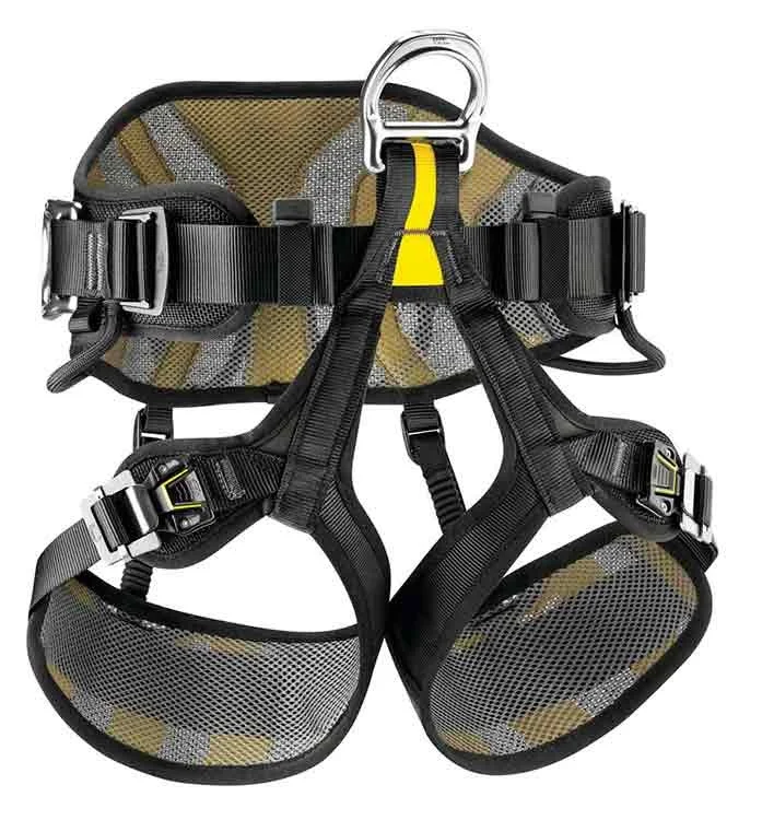 Petzl Avao Sit Fast: C079BA02;Europese versie; Gebruiker: 175-200cm; Taille: 83-120cm; Dijomvang: 50-65cm; Kleur: zwart / enkele punten geel; Gewicht: 1145g.