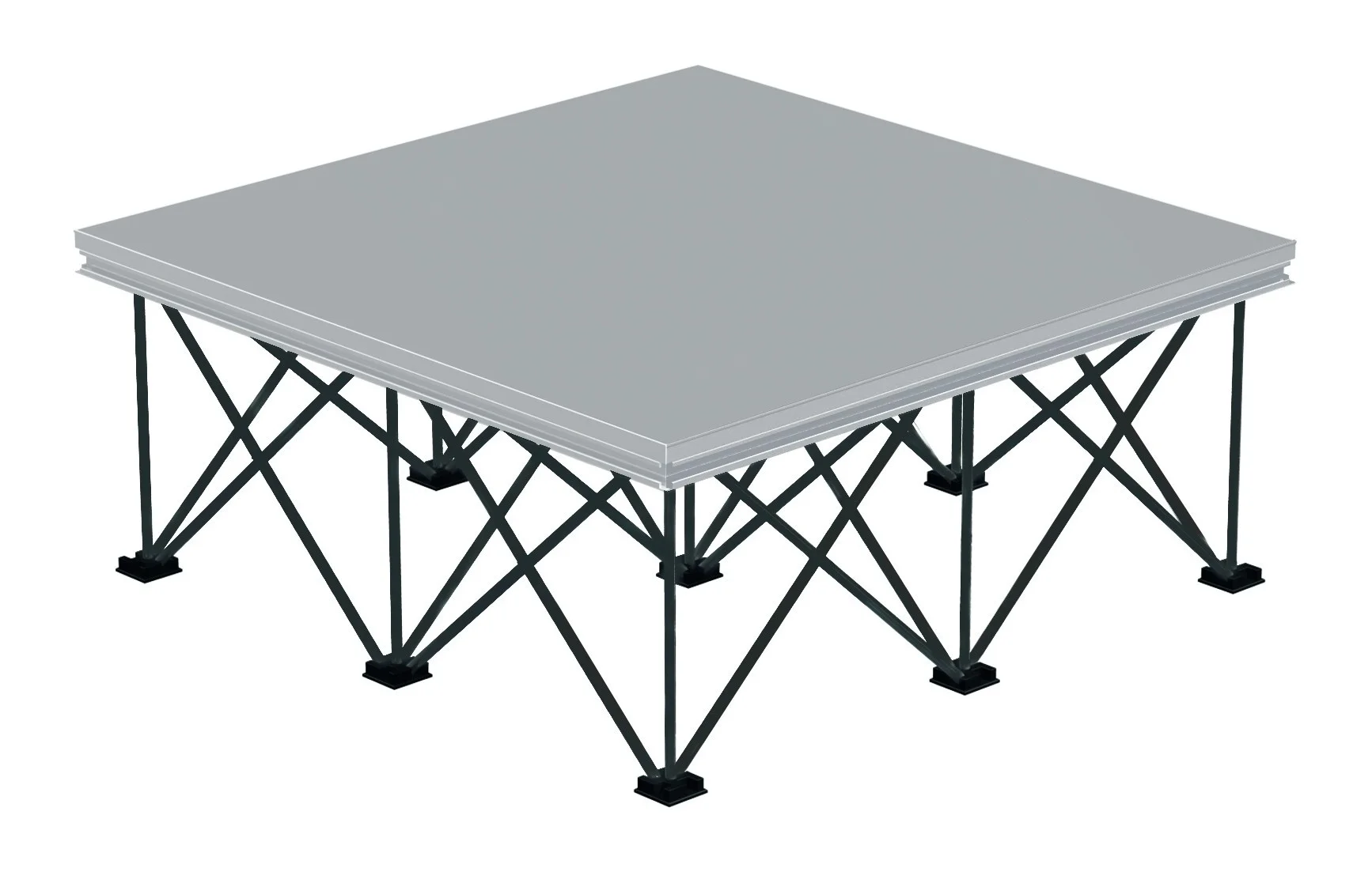 Het Spider Deck750 riser systeem is uitgerust met een uniek vouwsysteem waarmee het gemakkelijk kan worden opgeborgen en getransporteerd. De Leg Riser units zijn verkrijgbaar in 2 kleuren; aluminium en zwart en in 3 verschillende hoogtes, zodat je de podiumhoogte kunt veranderen wanneer dat nodig is.