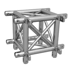 HOFFORK 350-4 aluminium truss heeft een buisdoorsnede van 48,3mm met een materiaaldikte van 4,5mm en is verkrijgbaar in truss-lengtes van 390, 666, 1.243, 1.820, 2.400, 3.000, 3.556, 4.140mm. Er zijn 2-, 3- en 4-weghoekstukken. De breedte van de truss is 347mm (buitenmaat).