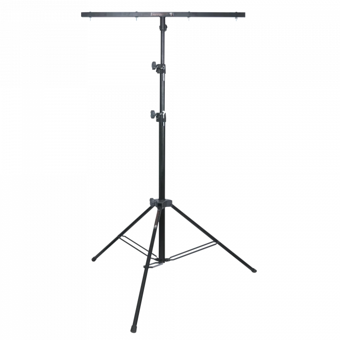 Showgear's Mammoth medium light stand met dubbele pootversterking. De standaard bevat een 1000mm T-Bar met een totaal draagvermogen van 30 kg. Het statief zelf kan tot 3000mm worden verlengd door gebruik te maken van de 2-delige telescopische buizen.