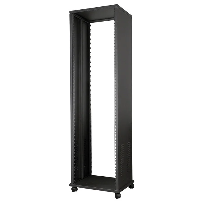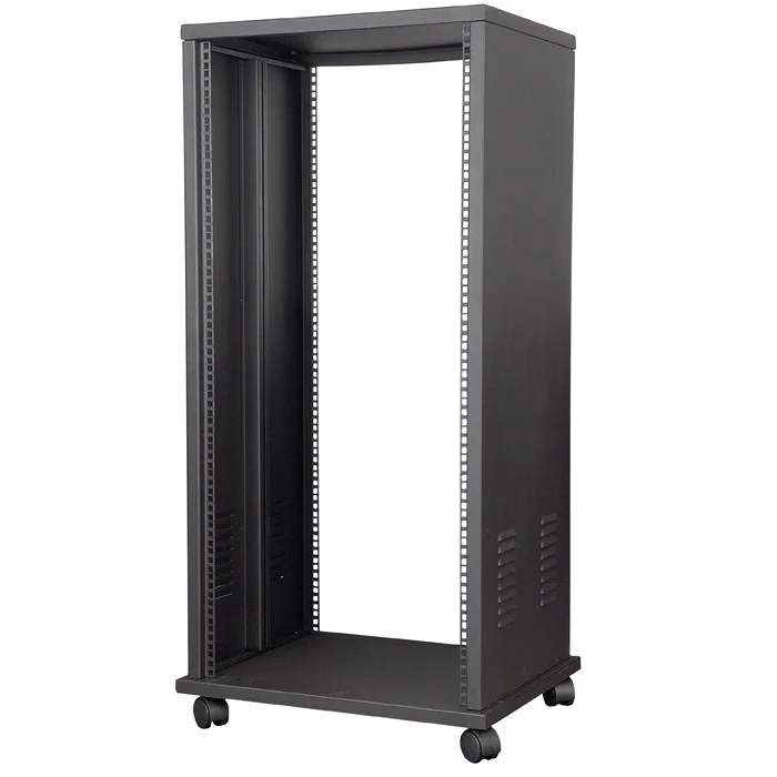 Dit 19-inch rek voor professionele apparatuur heeft een robuuste, gepoedercoate metalen behuizing met geventileerde zijkappen en stevige montagerails aan de voor- en achterkant. Vier rubberen voetjes en vier zwenkwieltjes zijn bijgeleverd. Het rek wordt plat verpakt geleverd en is eenvoudig te monteren met de meegeleverde M6-montageset.