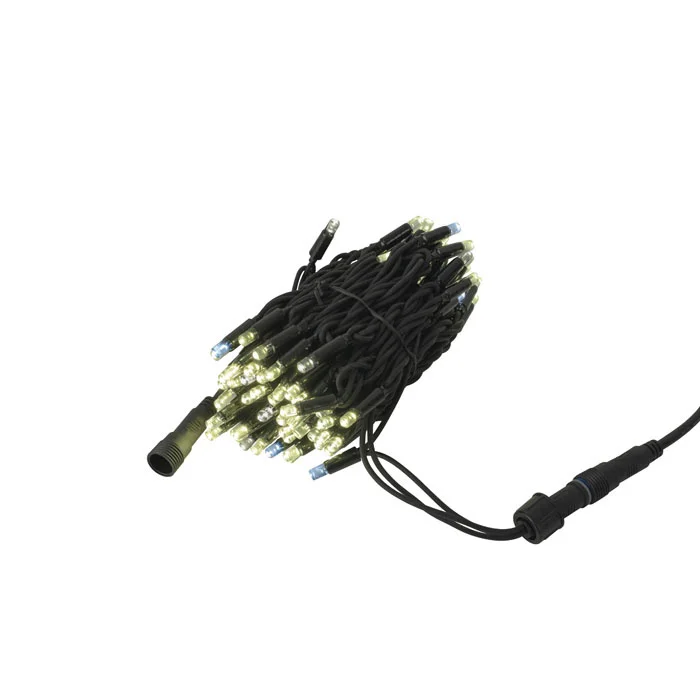 Het Showtec Koppelbaar Rubber FX LED Lichtsnoer WW is een betaalbaar en decoratief lichtsnoer met effecten dat zeer geschikt is voor seizoensdecoratie en voor verlichtingseffecten in tuinen, bomen en op terrassen. Dankzij de stevige rubberen kabel en IP65-classificatie is de string light geschikt voor tijdelijk buitengebruik. Het Koppelbaar Rubber FX LED Lichtsnoer WW is verkrijgbaar in twee lengtes: 10 m en 20 m. Beide versies hebben 80% statische warmwitte LED's en 20% willekeurig knipperende koudwitte flits-LED's. Tot 200 m lichtsnoer kan in serie worden aangesloten op één voedingskabel. Een speciale voedingskabel wordt meegeleverd.