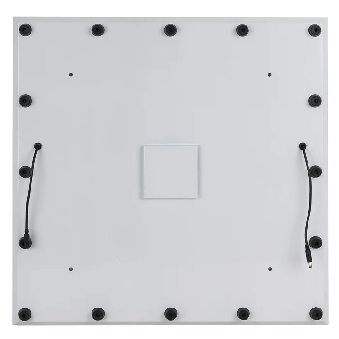Technische specificaties Type Lichtbron: LED LED-kleuren: RGB Ingangsspanning: 28 V DC Vermogensverbruik: 8 W Hoogte (mm): 607 mm Breedte (mm): 607 mm Diepte (mm): 30 mm Gewicht: 8.5 kg Maximale Belasting: 150 kg IP-waarde: IP20 Rear / IP44 Top Behuizing: Metal Kleur: White DMX-kanalen: 5