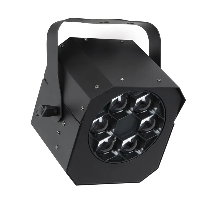 Technische specificaties Type Lichtbron: LED Aantal Lichtbronnen: 6 Vermogen Lichtbron: 15 W LED-kleuren: RGBW Aansturing: Built-in Program / DMX / Manual / Master Slave / Sound DMX-kanalen: 10 / 34 Protocollen: DMX Oneindige Rotatie: Rotating Optics Ingangsspanning: 100-240 V AC 50-60 Hz Vermogensverbruik: 70 W Power Connector In: IEC Power Connector Uit: IEC DMX-connector: XLR 3P In/Out Hoogte (mm): 247 mm Breedte (mm): 246 mm Diepte (mm): 185 mm Gewicht: 3.16 kg IP-waarde: IP20 (indoor use only) Behuizing: Aluminium die-cast Kleur: Black