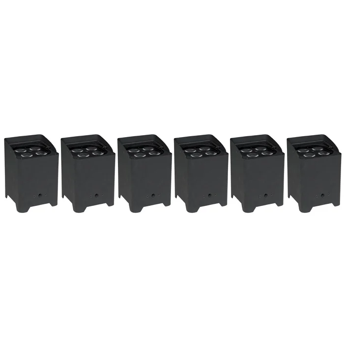 De EventLITE Q4 Set is ideaal voor verhuurbedrijven. De set omvat 6 EventLITEs en een afstandsbediening in een compacte flightcase. De IR-afstandsbediening is handig voor een snelle, eenvoudige en gesynchroniseerde opstelling. De spots kunnen worden opgeladen in de flightcase met de ingebouwde lader.