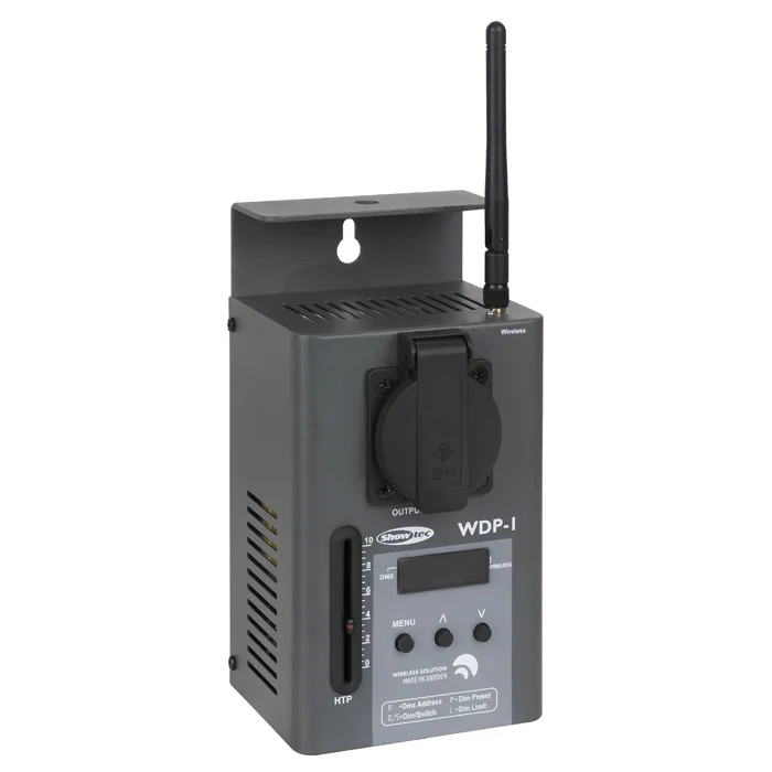 De Single WDP-1 is een 1-kanaals DMX-dimmer/-switch met ingebouwde Wireless DMX-ontvanger. Deze kan worden bevestigd op een muur, truss of fixture en is dus geschikt voor iedere locatie. Het apparaat heeft zowel een switch- als een dimstand en kan handmatig worden bediend met de 50mm-schuifregelaar.