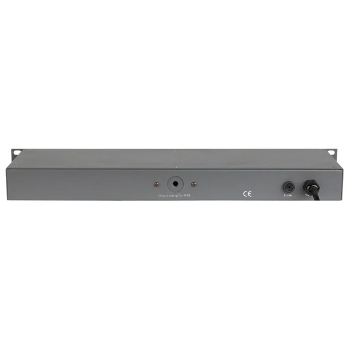 Technische specificaties Ingangssvoltage: 100-240 VAC 50-60 Hz Vermogensverbruik: 5 W Power connector in: Schuko Plug DMX connector: XLR 3P In/Out / XLR 5P In/Out DMX connector in: XLR 3P / XLR 5P DMX connector uit: XLR 3P / XLR 5P Lengte (mm): 483 mm Breedte (mm): 134 mm Hoogte (mm): 46 mm Gewicht: 2.5 kg Hoogte eenheden: 1 U IP waarde: IP20 (indoor use only) Behuizing: Metal Kleur: Gray Control mode: DMX Universes: 1