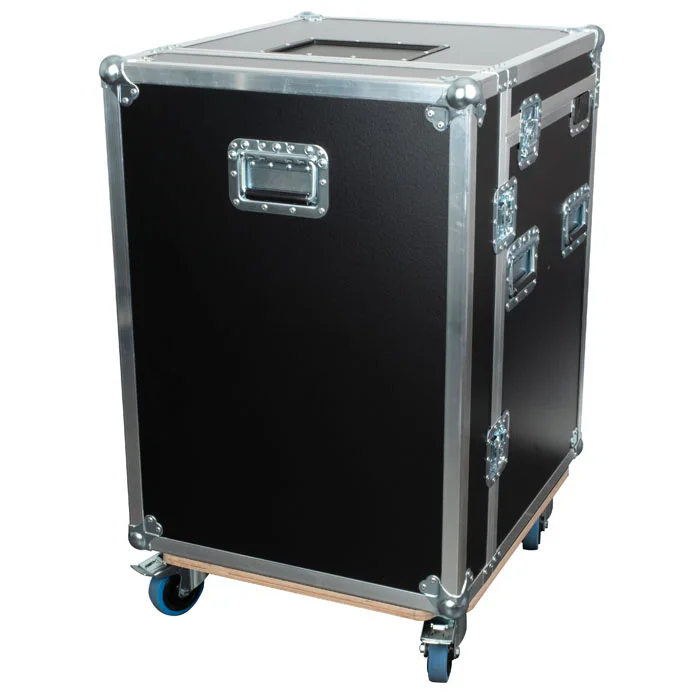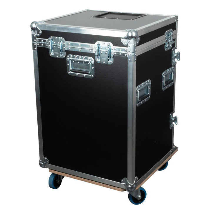 De Showtec Case voor Mistique is een praktische flightcase voor de Showtec Mistique CO₂ hazer en twee stalen gasflessen van 6 kg. Hij heeft een stevige uittrekbare lade voor de montage van een podiumventilator (bijvoorbeeld de Antari AF-3E), een verzonken ruimte voor een tourlabel, een scharnierend bovendeksel en een kabeldoorvoer met rubberen bescherming. De koffer is 60 cm breed en gemaakt van stevig 10 mm berken multiplex gelamineerd met een hoogwaardig thermoplastisch laminaat. Voor alle onderdelen is Penn Elcom hardware gebruikt. De Showtec Case voor Mistique is een premium flightcase, perfect voor professioneel gebruik.