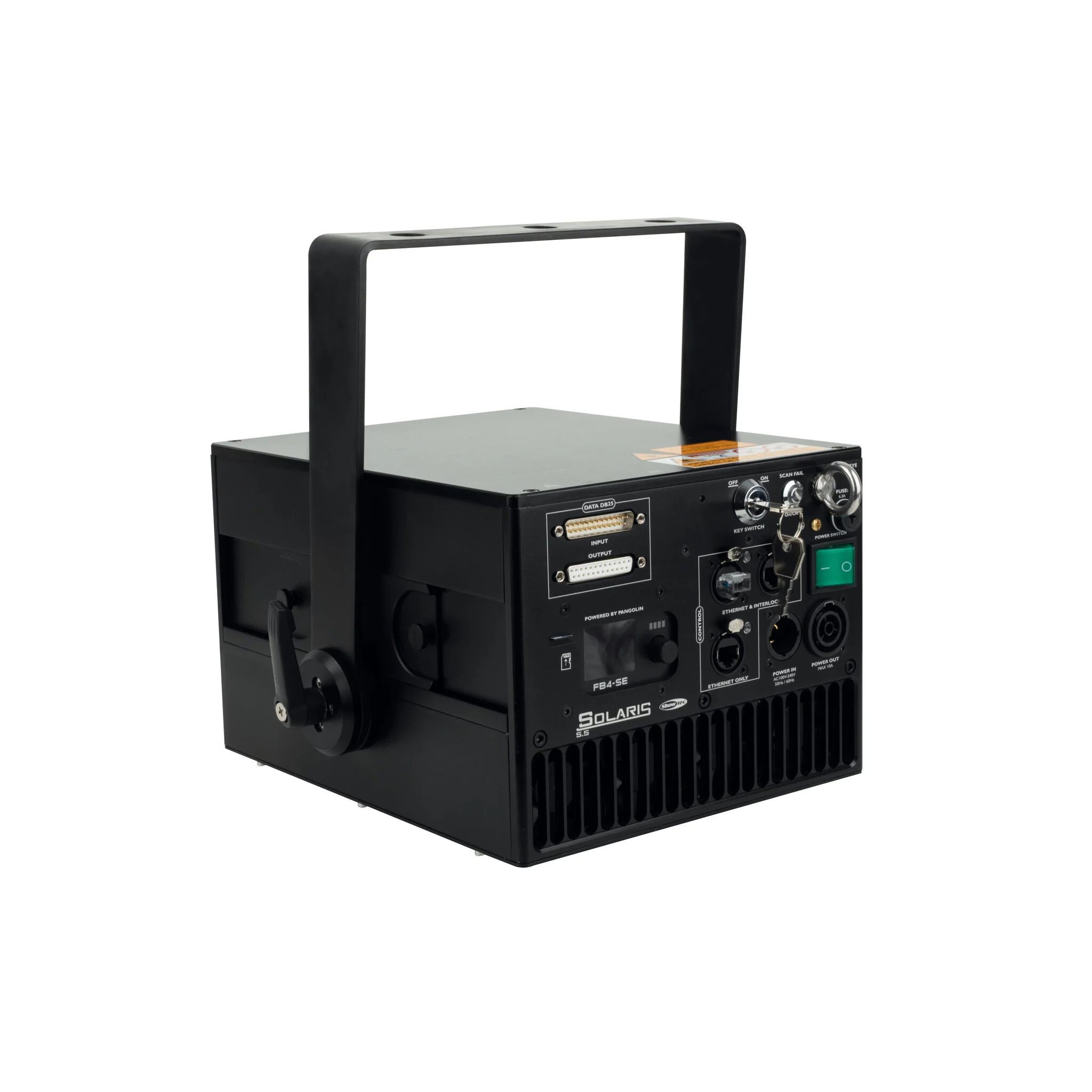 De Solaris lasereffecten zijn volledig beveiligd tegen storingen en voldoen aan alle noodzakelijke veiligheidsvoorschriften. De units die zijn uitgerust met de Pangolin FB4 module, activeren de volledige mogelijkheden van de bekroonde QuickShow-software. Met deze gespecialiseerde software is het maken van een professionele show heel eenvoudig. Hiermee kun je je laser(s) via je PC besturen via een volledige netwerk-setup. De Solaris lasereffecten bieden je een professionele uitrusting, die geschikt is voor grotere zalen en professionele shows.