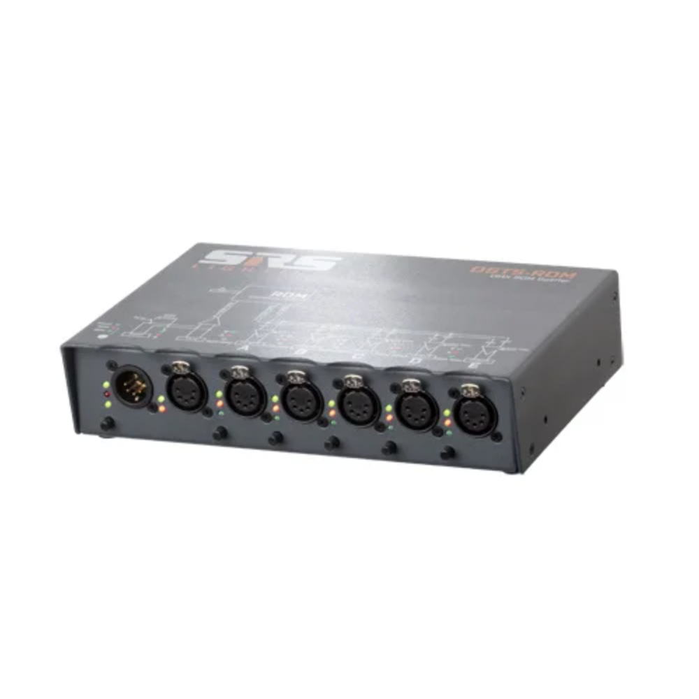 Alle DMX-splitters van SRS Lighting kunnen worden uitgevoerd met DMX 3- en/of 5-pin XLR en/of RJ45. Alle DMX-splitters hebben een DMX-ingang en DMX-thru. De DMX-uitgangen zijn optisch/elektrisch geïsoleerde leidingen en zijn gemarkeerd met nummers. Elke DMX-uitgang heeft een aparte voeding en line driver, en een duidelijk aanduiding van het signaal door middel van twee ledjes per uitgang. De DMX-splitters hebben een geschakelde voeding waardoor de netspanning mag variëren tussen 85V en 265V. De SRS-splitters zijn verkrijgbaar met 3- en 5-polige XLR DMX-aansluiting.