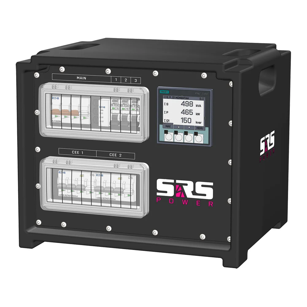 SRS stroom distributie systemen staan wereldwijd bekend als degelijk, uitstekende prijs/kwaliteit verhouding en degelijke geconstrueerd, ze worden toegepast bij grote en kleine evenementen en zijn verkrijgbaar tot 400A per fase. SRS produceert een complete range stroomverdelers voor touring en vaste installatie op klant specificatie!