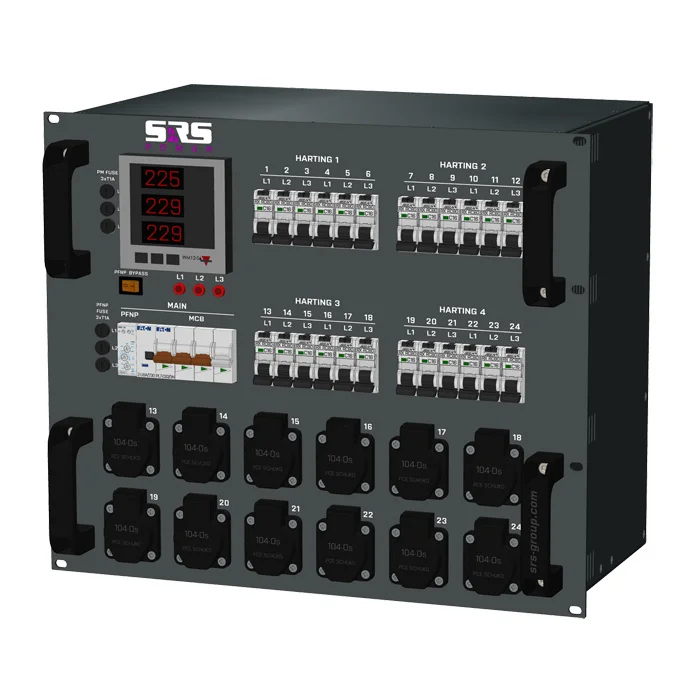 SRS stroom distributie systemen staan wereldwijd bekend als degelijk, uitstekende prijs/kwaliteit verhouding en degelijke geconstrueerd, ze worden toegepast bij grote en kleine evenementen en zijn verkrijgbaar tot 400A per fase. SRS produceert een complete range stroomverdelers voor touring en vaste installatie op klant specificatie!